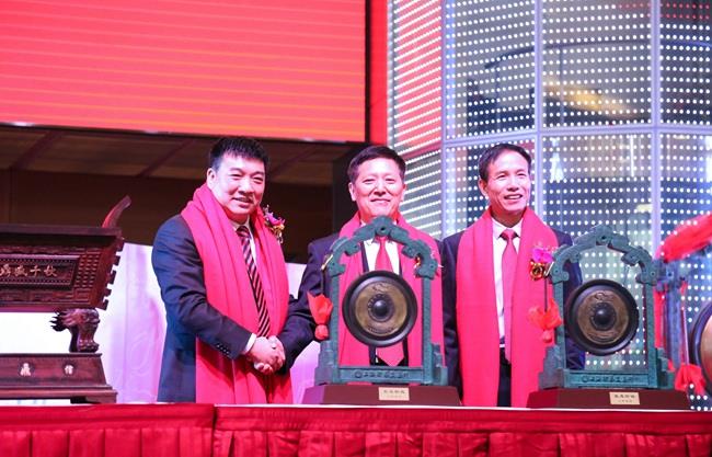 上圖為陳慶堂董事長和福清市人民政府張帆市長、上交所領(lǐng)導共同敲響開市銅鑼