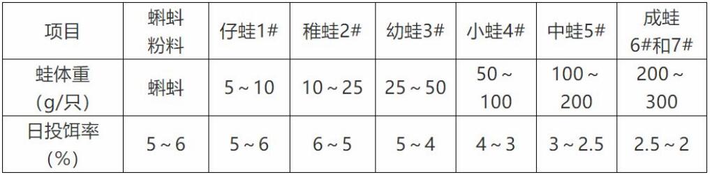 ? 根據(jù)蛙規(guī)格及數(shù)量,參考投餌參考表中推算投餌量,再根據(jù)天氣、水溫、水質(zhì)、餌料臺(tái)觀察情況、蛙攝食和健康狀況等予以適當(dāng)調(diào)整。
